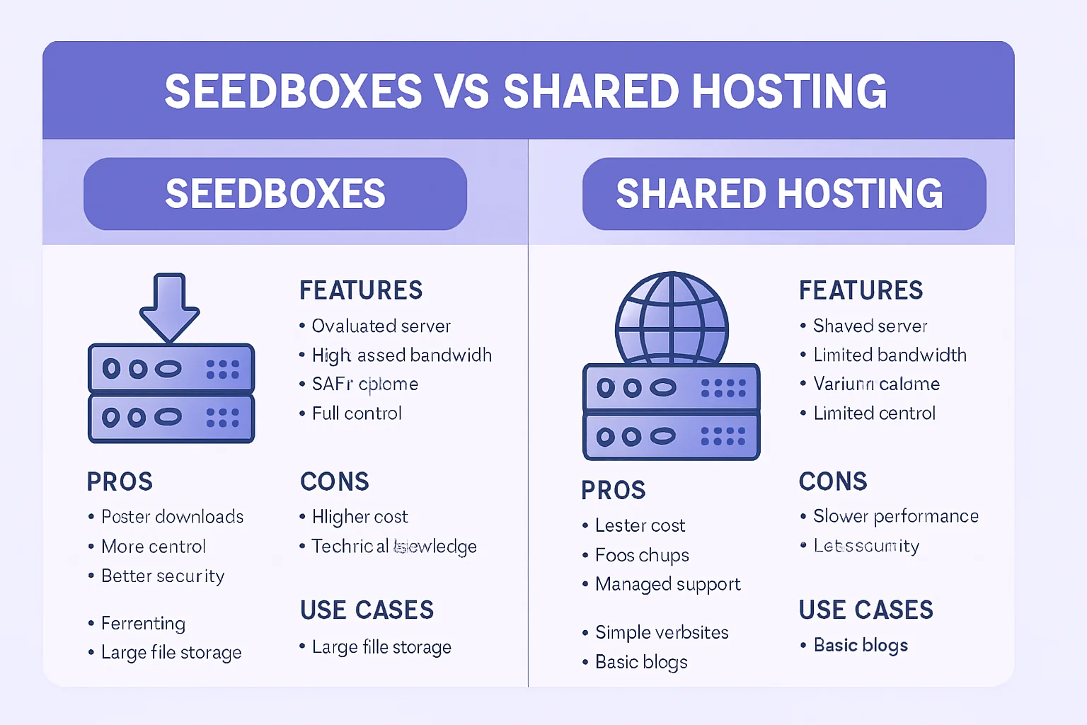 Découvrez les différences entre seedboxes et hébergement mutualisé, y compris leurs usages, avantages et inconvénients.